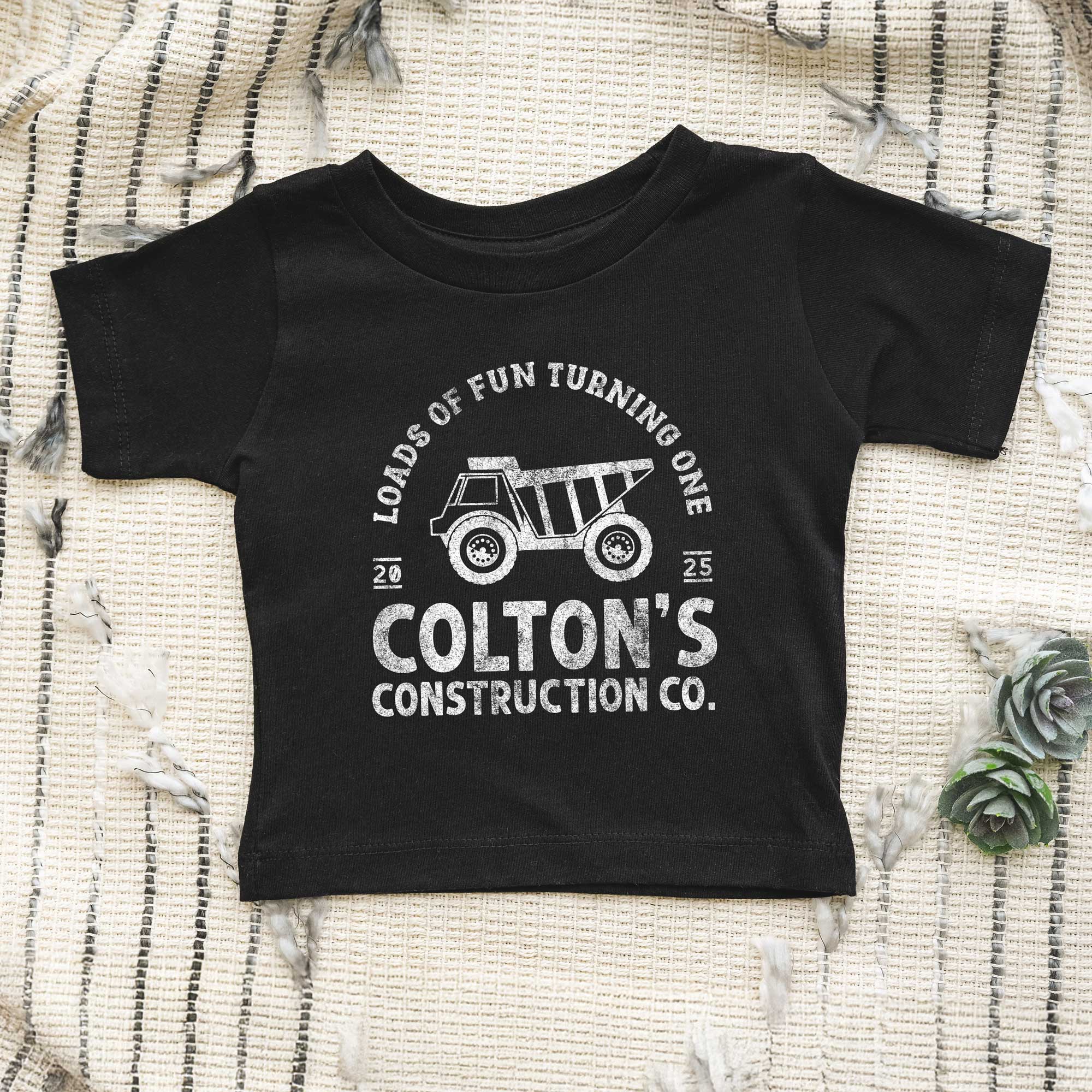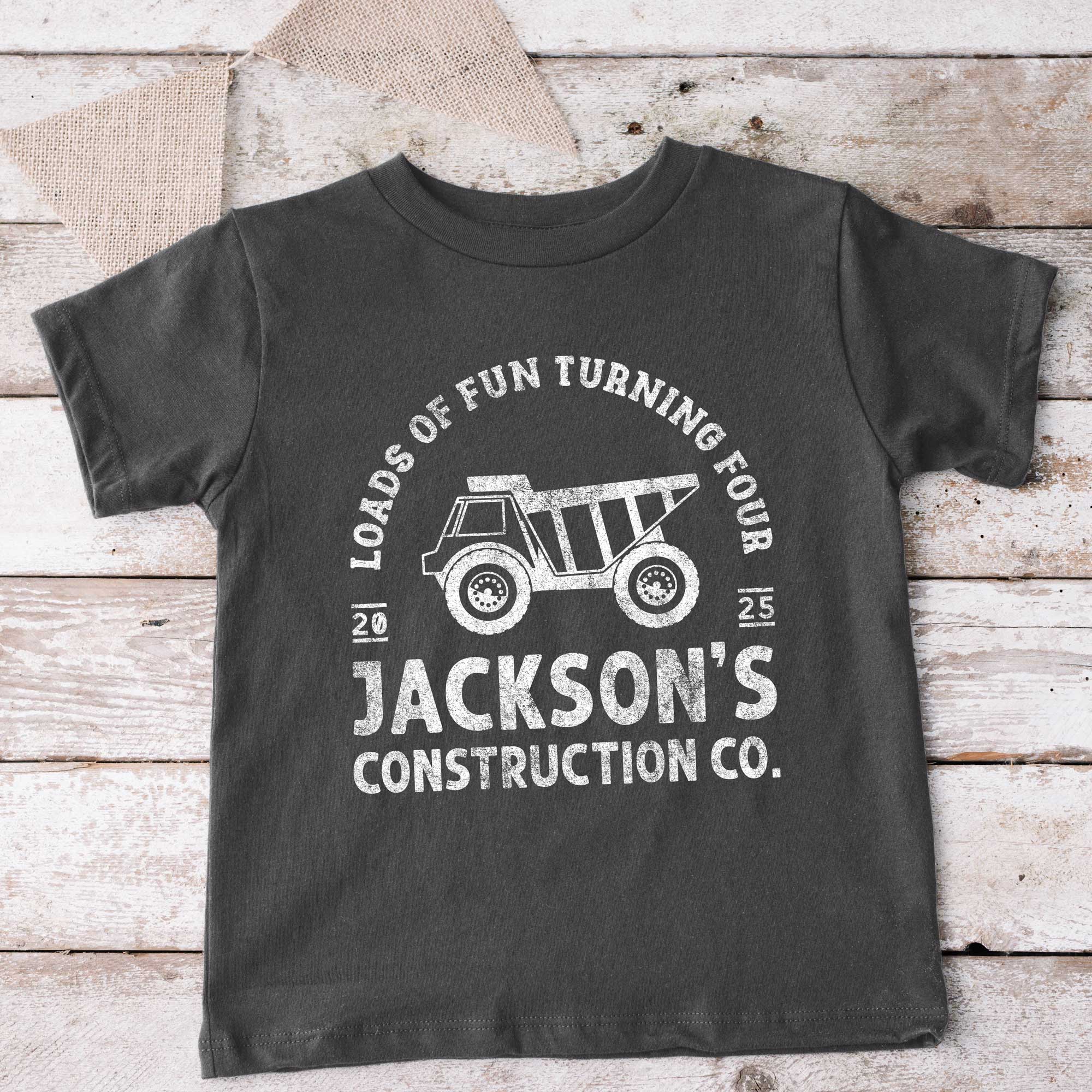 Introducing the personalized Birthday Construction Shirt by Peculiar People Designs. Personalize this super-soft and lightweight t-shirt for boys, with your child’s age, name and ESTD year. This fun dump truck shirt is so cute for construction themed birthday party outfit!