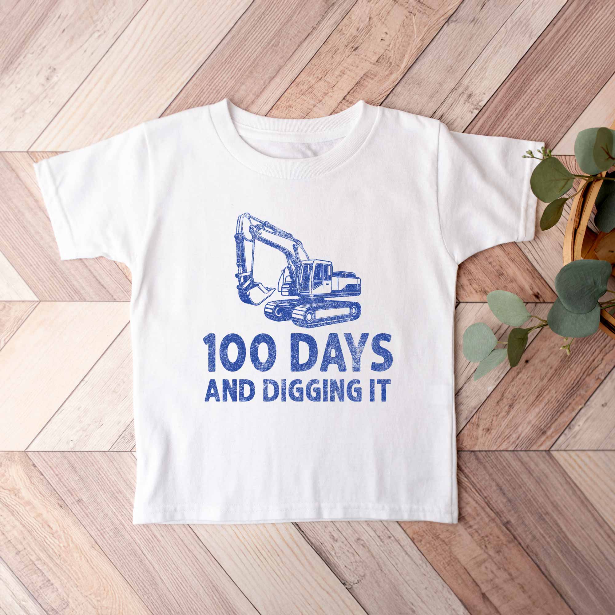 Celebrate 100 days of school in style with the Excavator Shirt by Peculiar People Designs. Optionally personalize this construction themed shirt for boys with your own wording. A lightweight cotton tee, super cute for kids (and teachers too) who really dig construction vehicles and track hoes.
