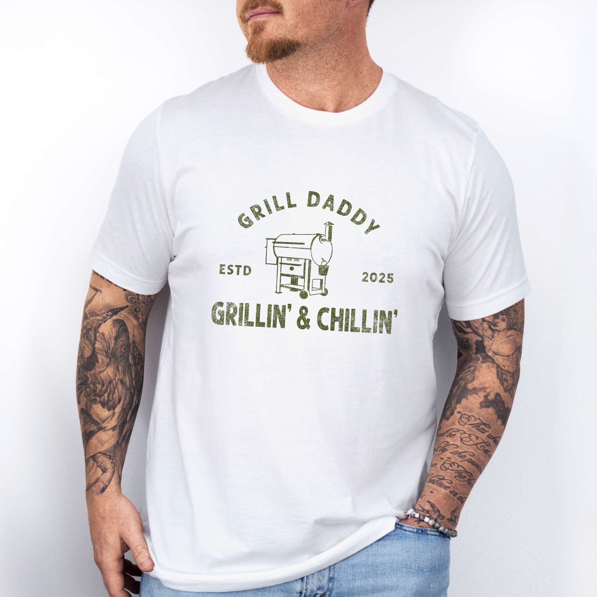 Introducing the Grill Daddy Shirt: Smoker Grill edition by Peculiar People Designs! Personalize this grilling shirt for Dad with the established year, and choice of shirt color to create a fun grilling accessories gift. Super fun as matching dad and baby t-shirts for a meat smoking new father. Super soft and lightweight, 100% cotton.