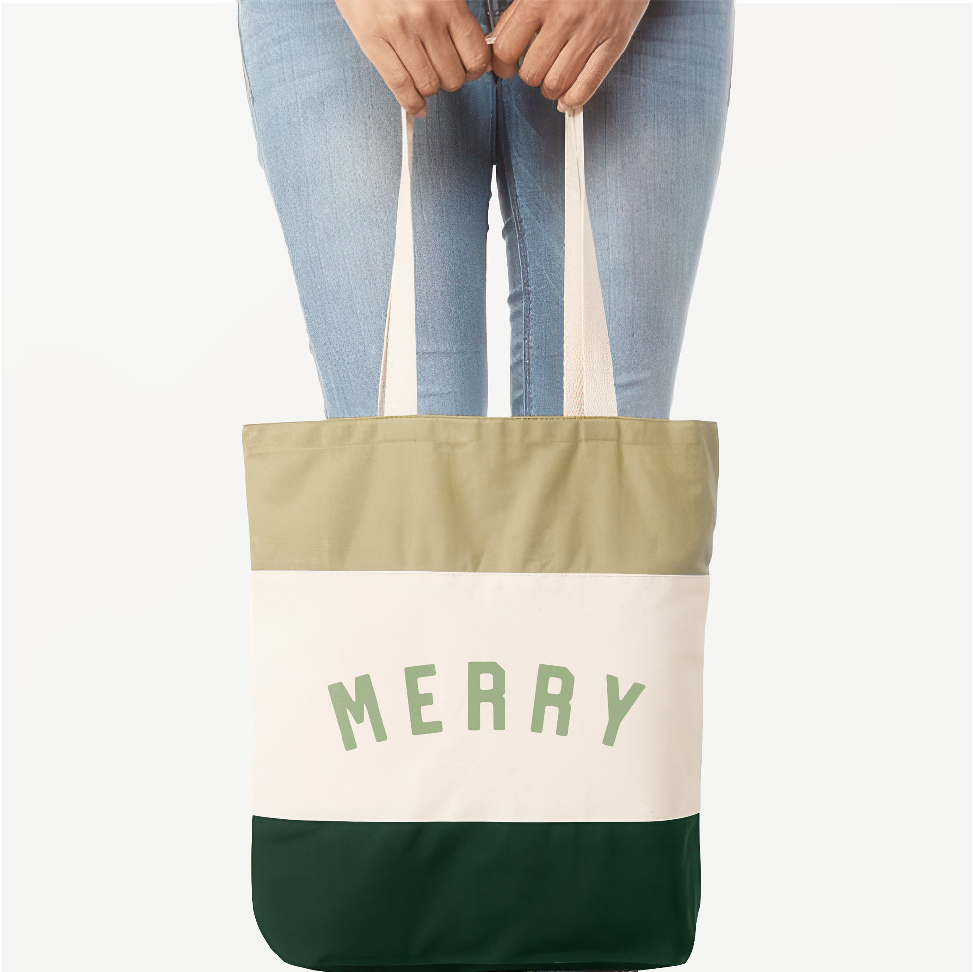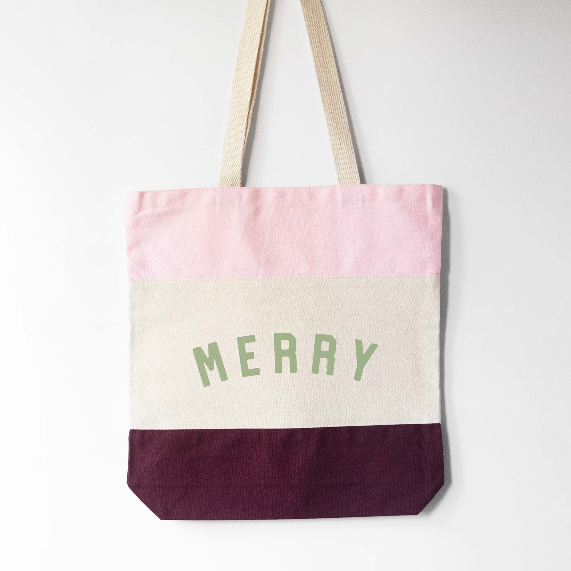 Tis the season to be merry, and you surely will be carrying the Merry Christmas Tote Bag by Peculiar People Designs! This reusable Christmas tote bag features a bold color block design and a gusset bottom. Super cute and super handy to have on hand for the holiday season; gift giving, shopping sprees, toting books, snacks, and other small essentials.