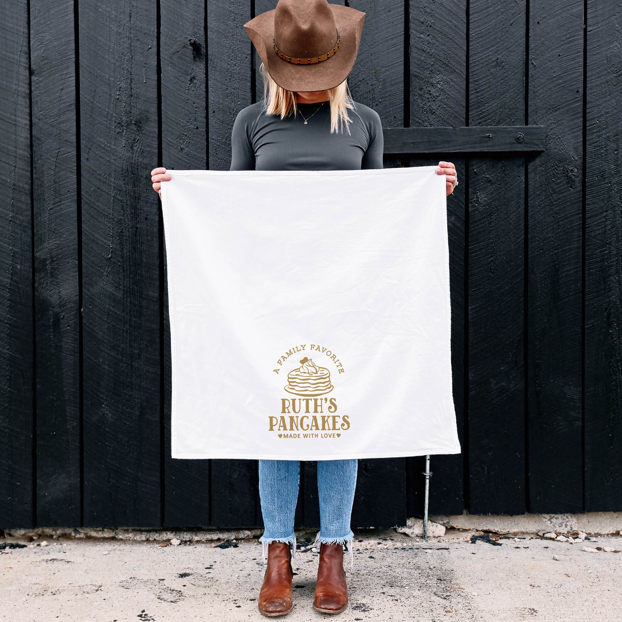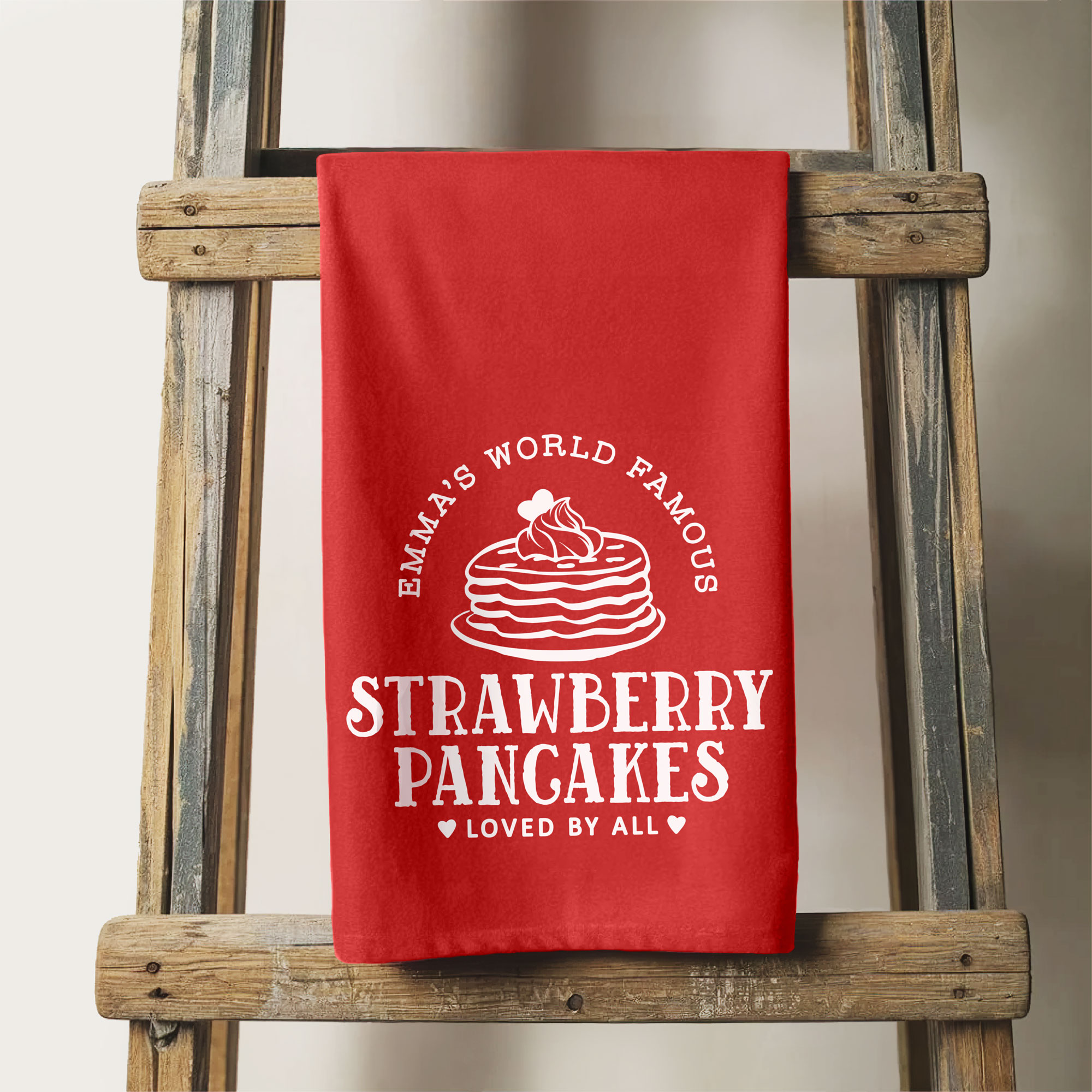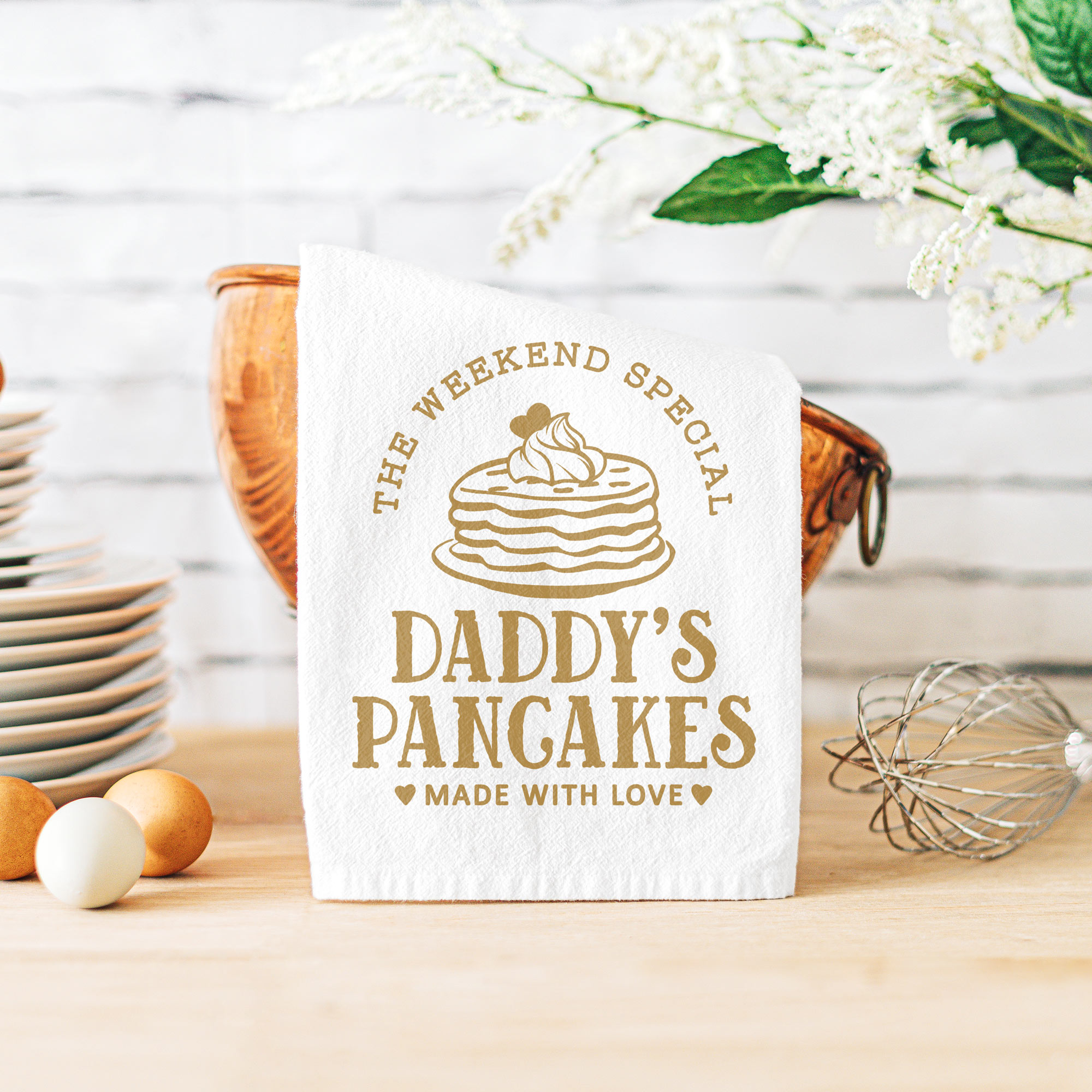 Create a unique gift for your favorite breakfast chef with the personalized Pancake Chef Tea Towel No. 1 by Peculiar People Designs! Personalize this adorable pancake kitchen towel with your own words. Available in four colors.
