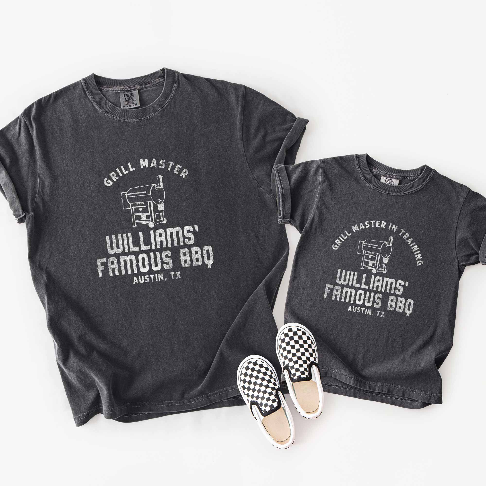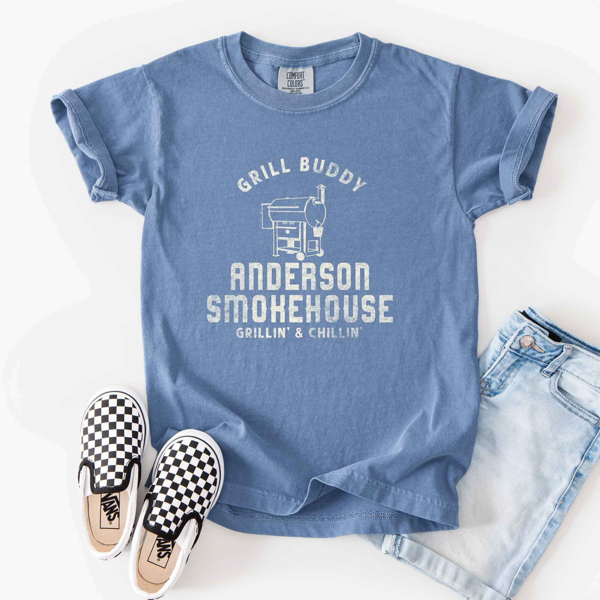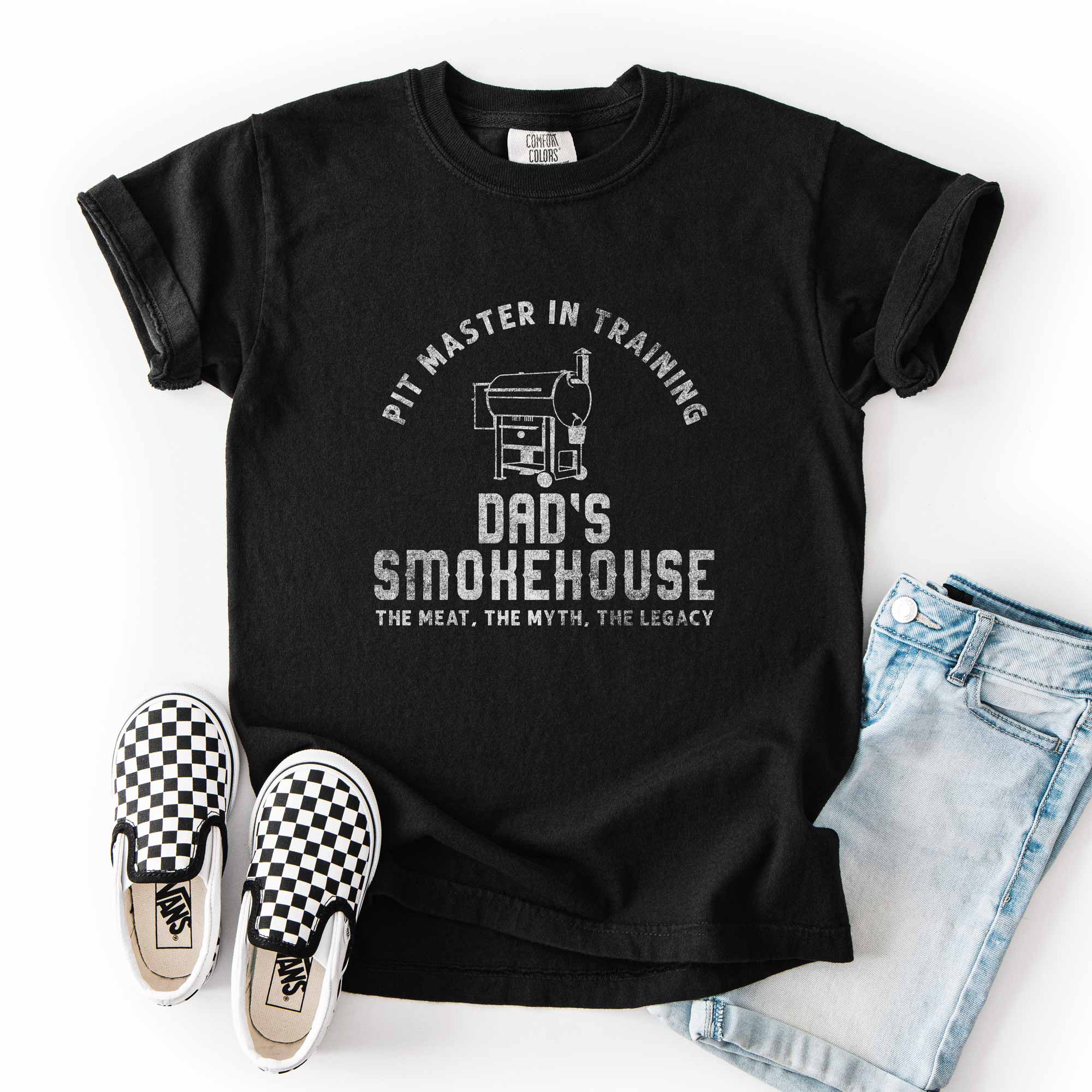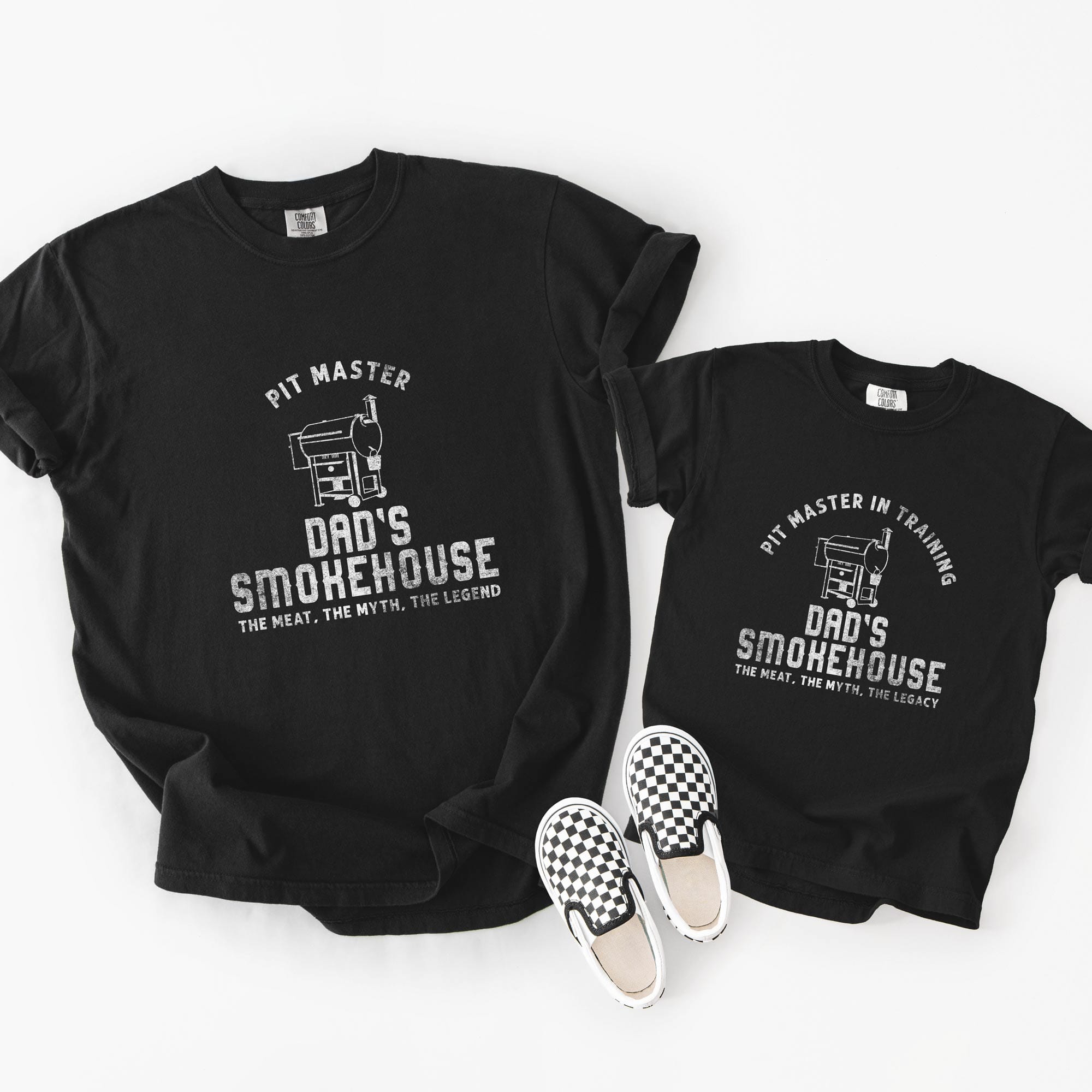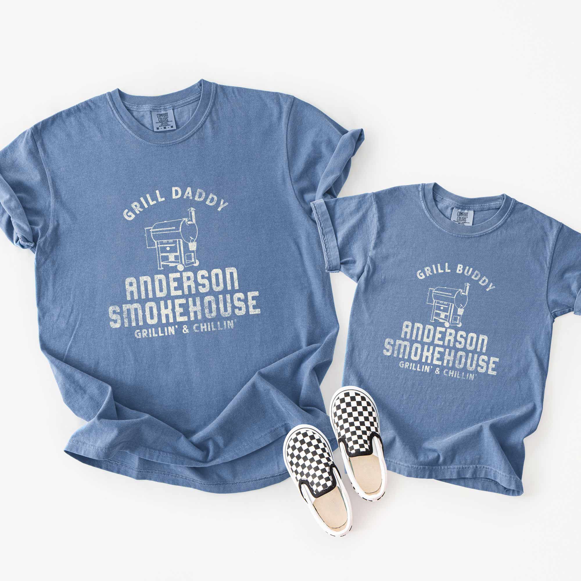 Wearing the Personalized Kids Smoker Grill T-Shirt by Peculiar People Designs, your little grill master in training will be next to Dad, learning how to smoke… smoke meat, that is! Pre-shrunk and pigment dyed, this kids grilling t-shirt is served up with a vintage, broken-in look from the start. Much like a favorite old tee… only without sauce stains (you’re welcome). Super fun as matching father and son shirts for the Grill Daddy and his Grill Buddy, or the Grill Master and the Grill Master in Training!