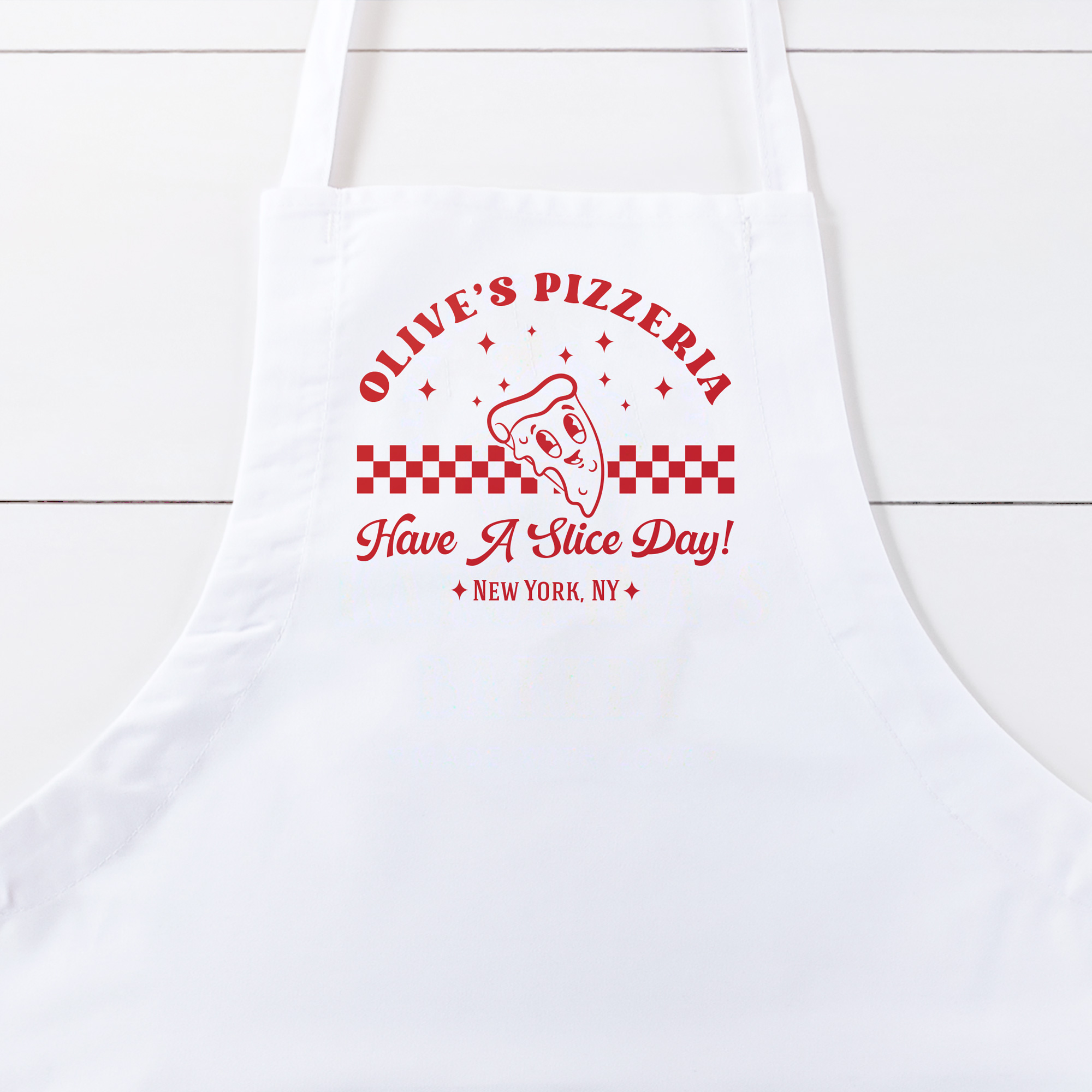 Create a fun gift for your favorite pizza chef with the Personalized Retro Pizza Butcher Apron by Peculiar People Designs! Personalize this adorable pizza making apron for men and women with your own words, apron color and print color. Available in an array of classic apron colors. Super cute as pizza accessories gifts for teens, and matching cooking aprons for couples.